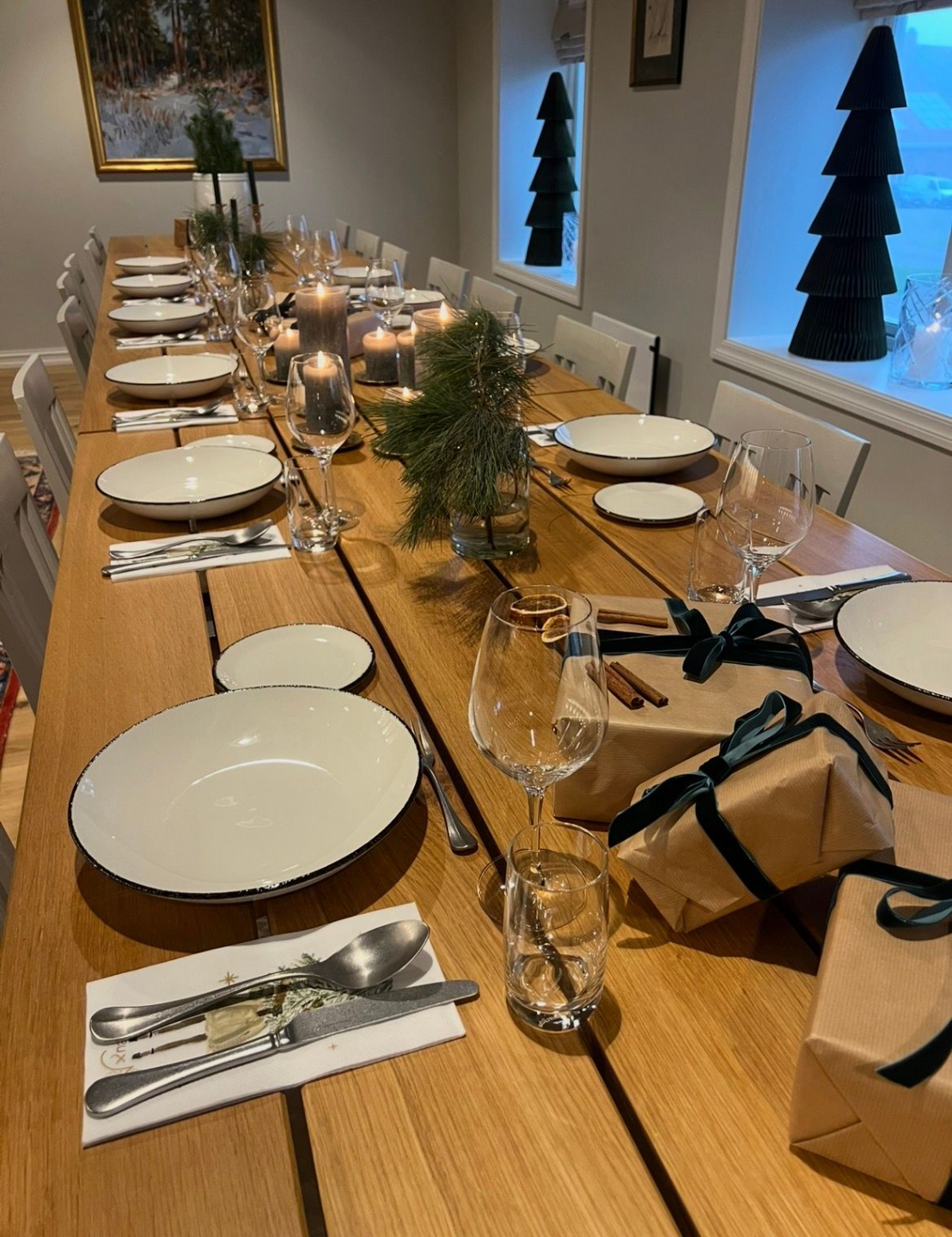 Etterpå samles vi på kjøkkenet for julegrøt med en vri, deilig julemusikk og hyggelig fellesskap